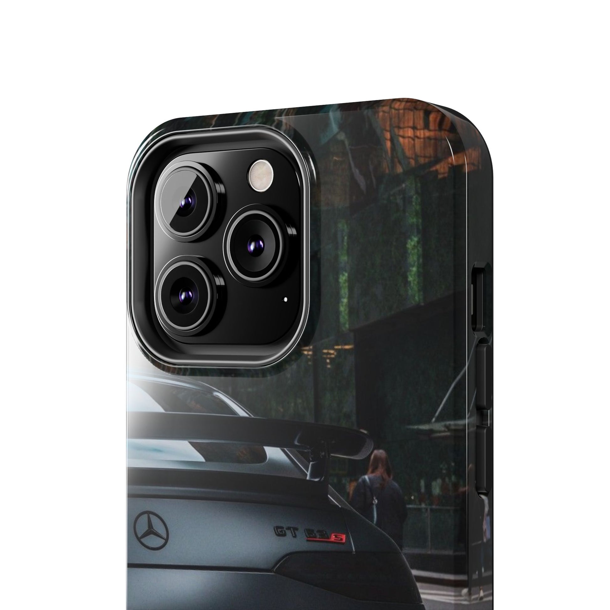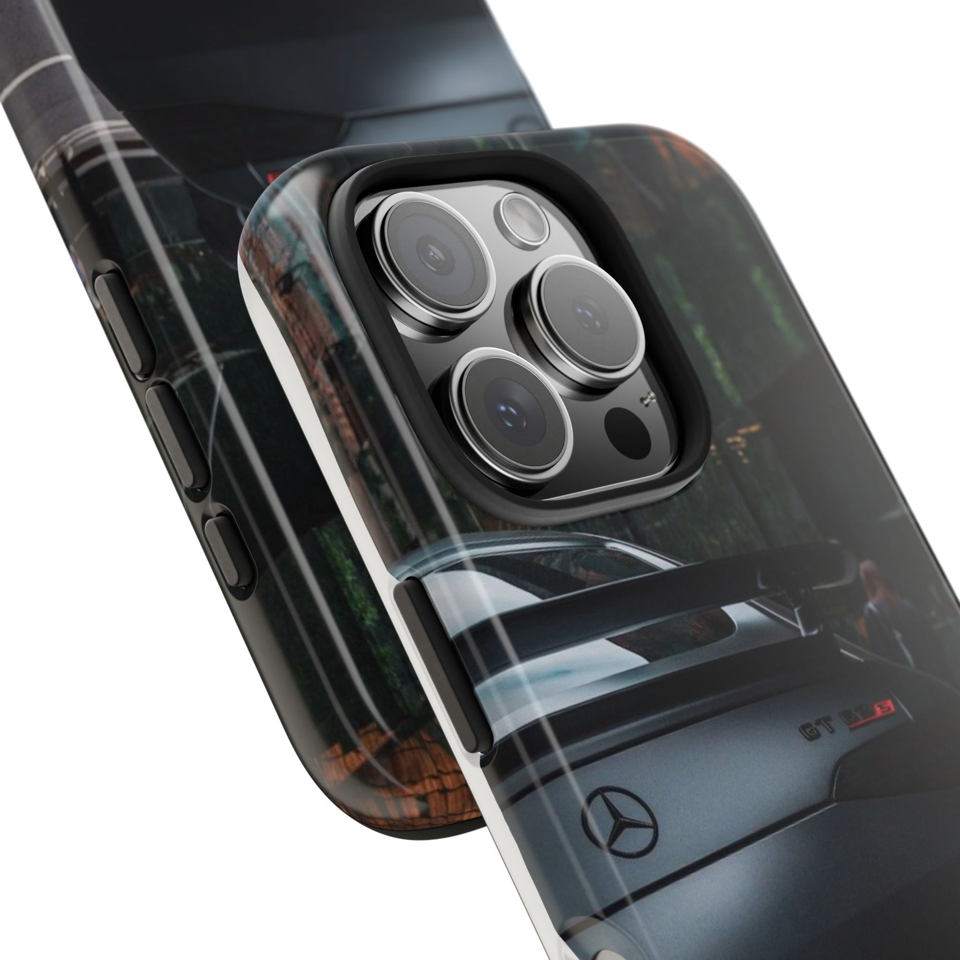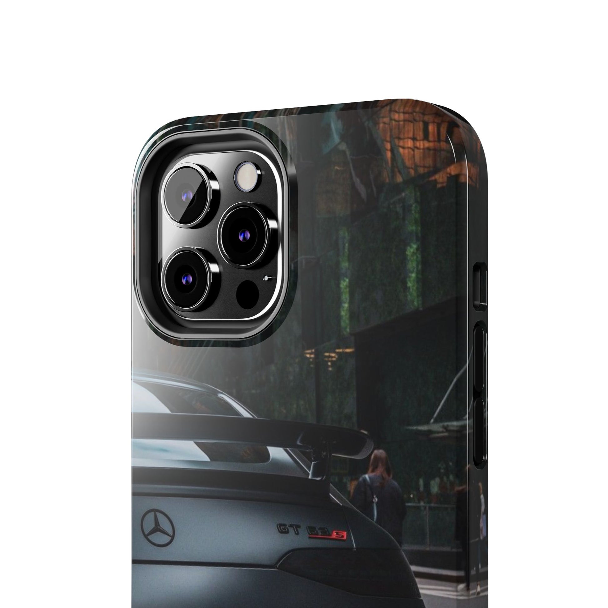 Protege o teu telemóvel com estilo automóvel! Esta capa resistente apresenta um design elegante de um carro desportivo GT preto mate visto de trás, perfeita para verdadeiros entusiastas de automóveis.