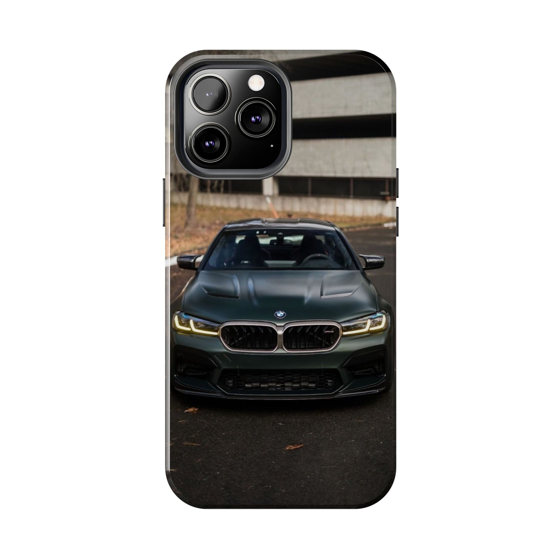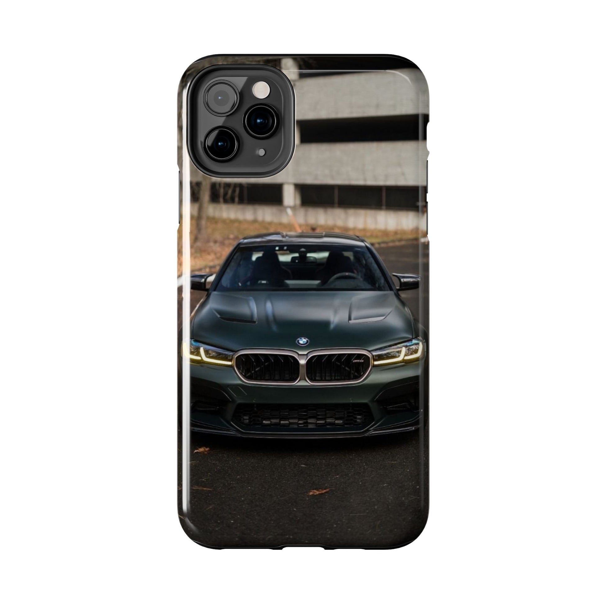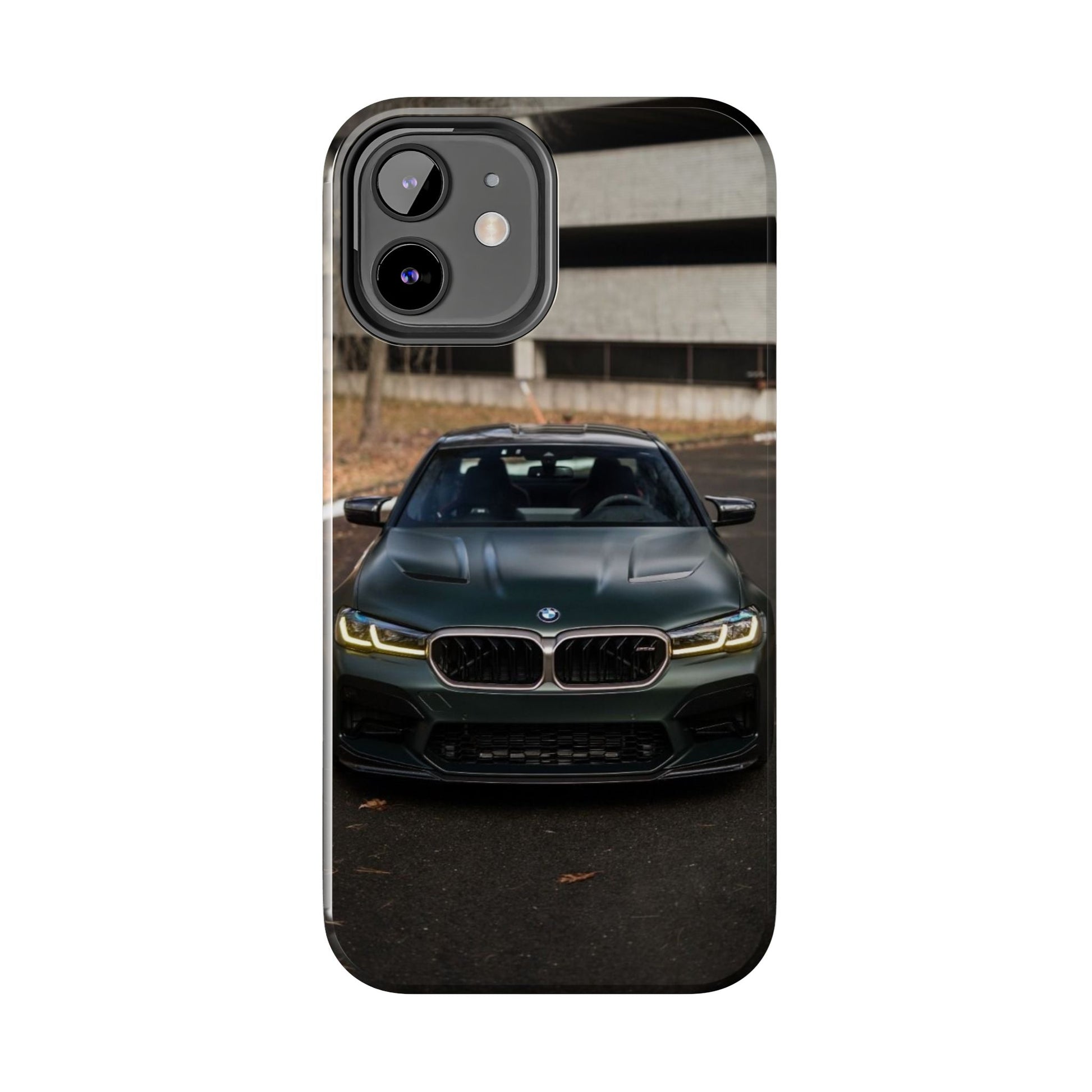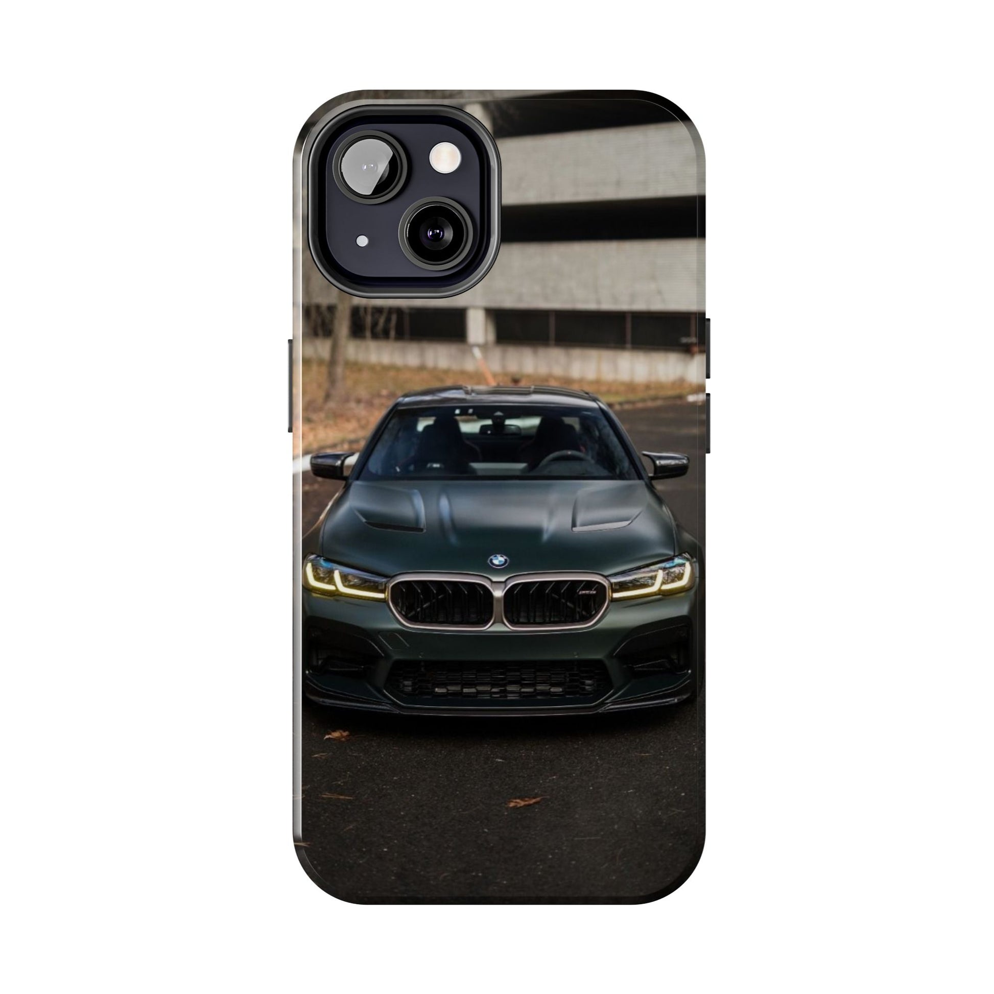 Protege o teu telemóvel com elegância automóvel! Esta capa resistente apresenta um design sofisticado de um BMW M5 CS visto de frente, perfeita para amantes de carros desportivos de luxo.