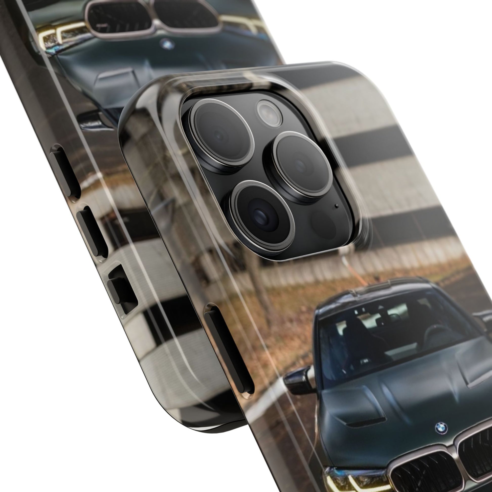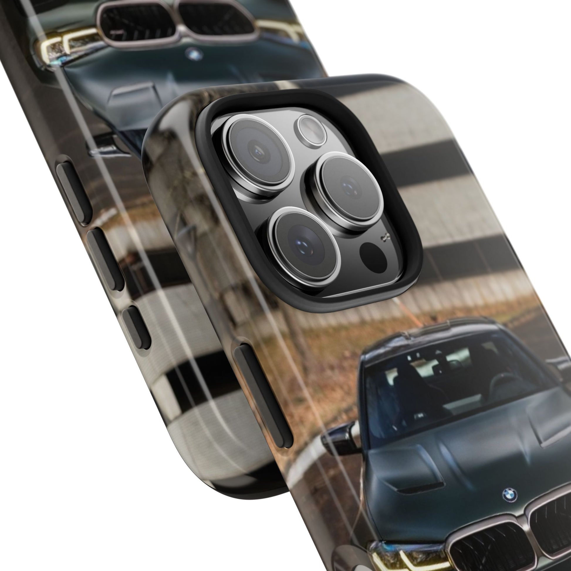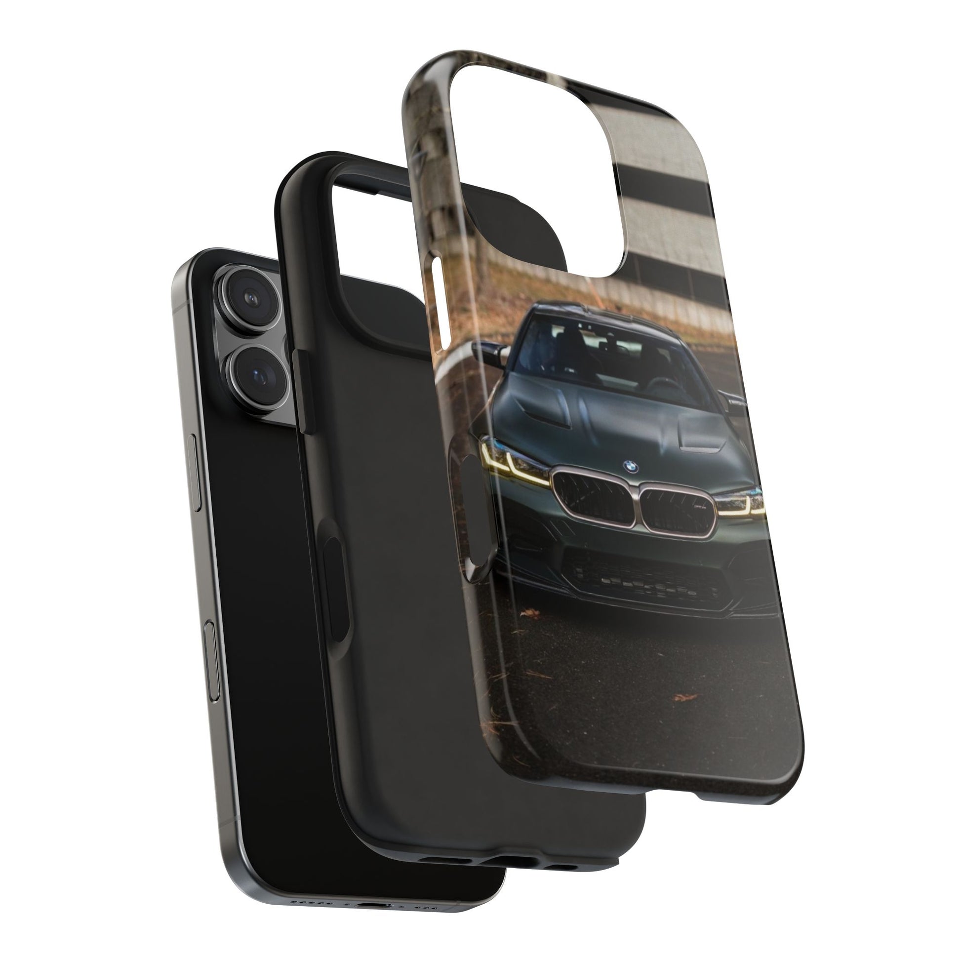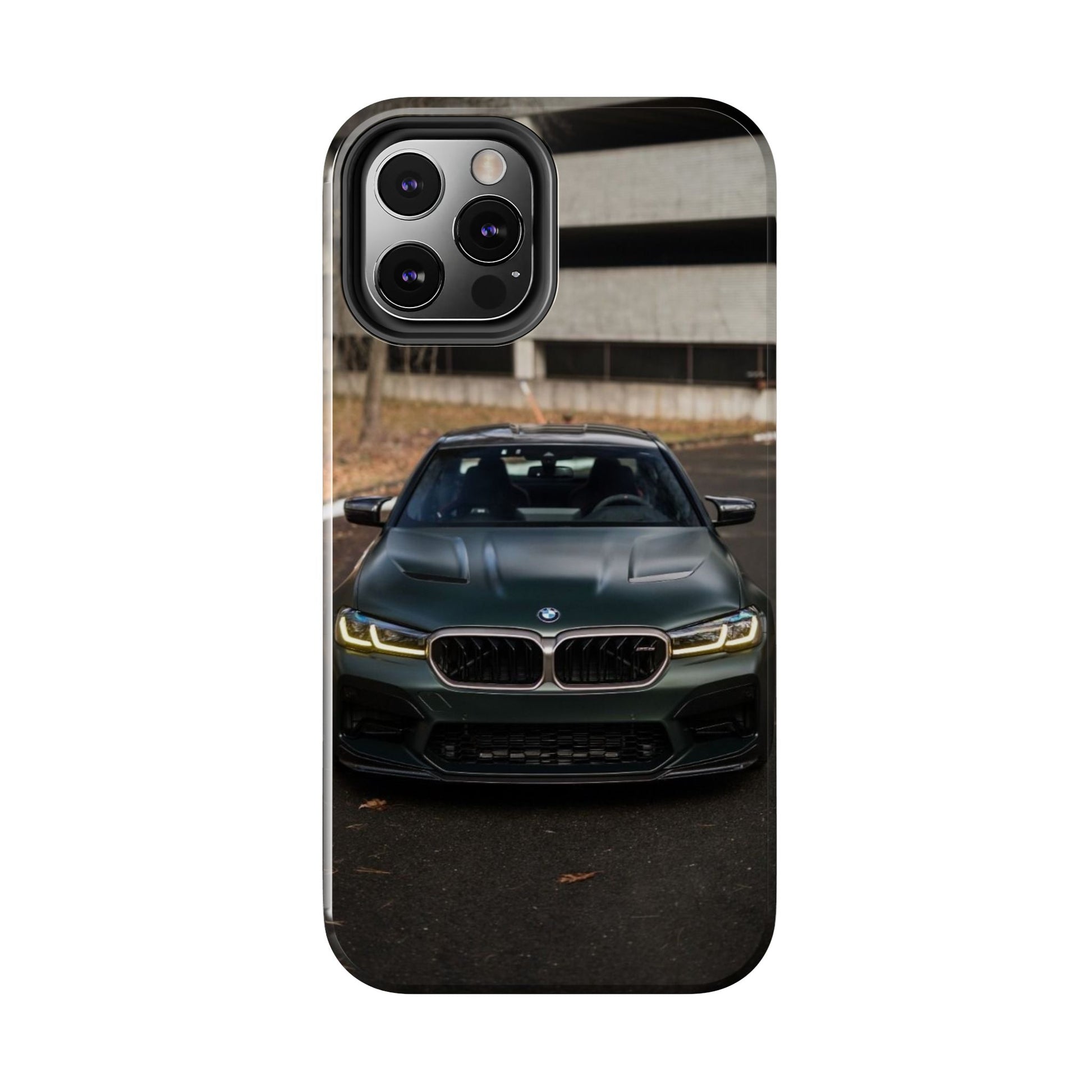 Protege o teu telemóvel com elegância automóvel! Esta capa resistente apresenta um design sofisticado de um BMW M5 CS visto de frente, perfeita para amantes de carros desportivos de luxo.