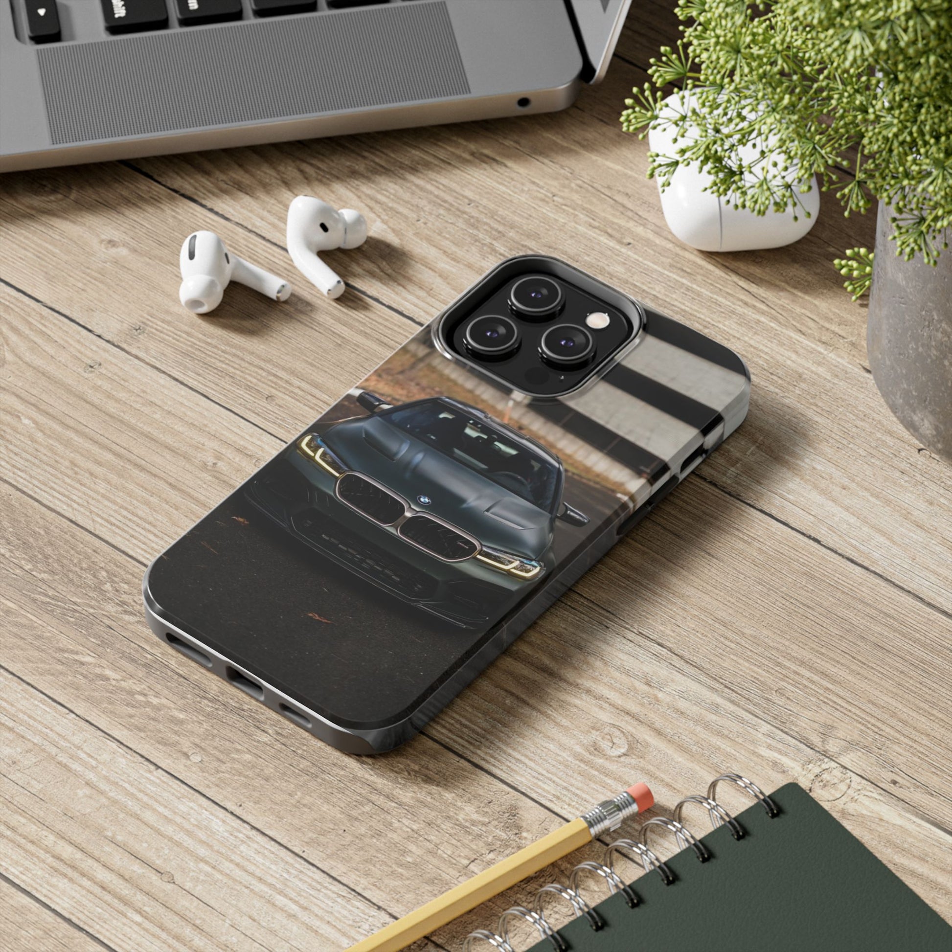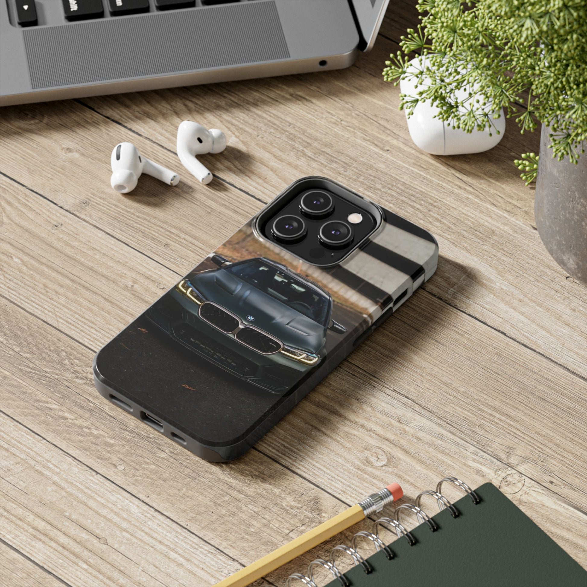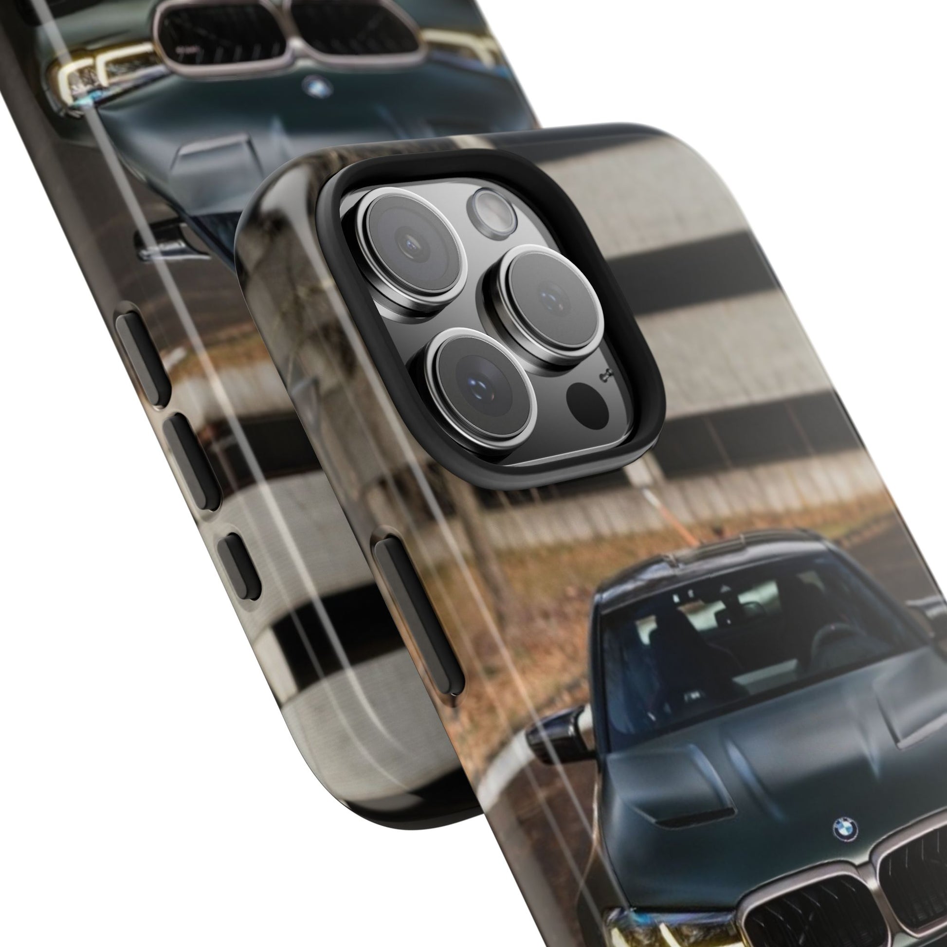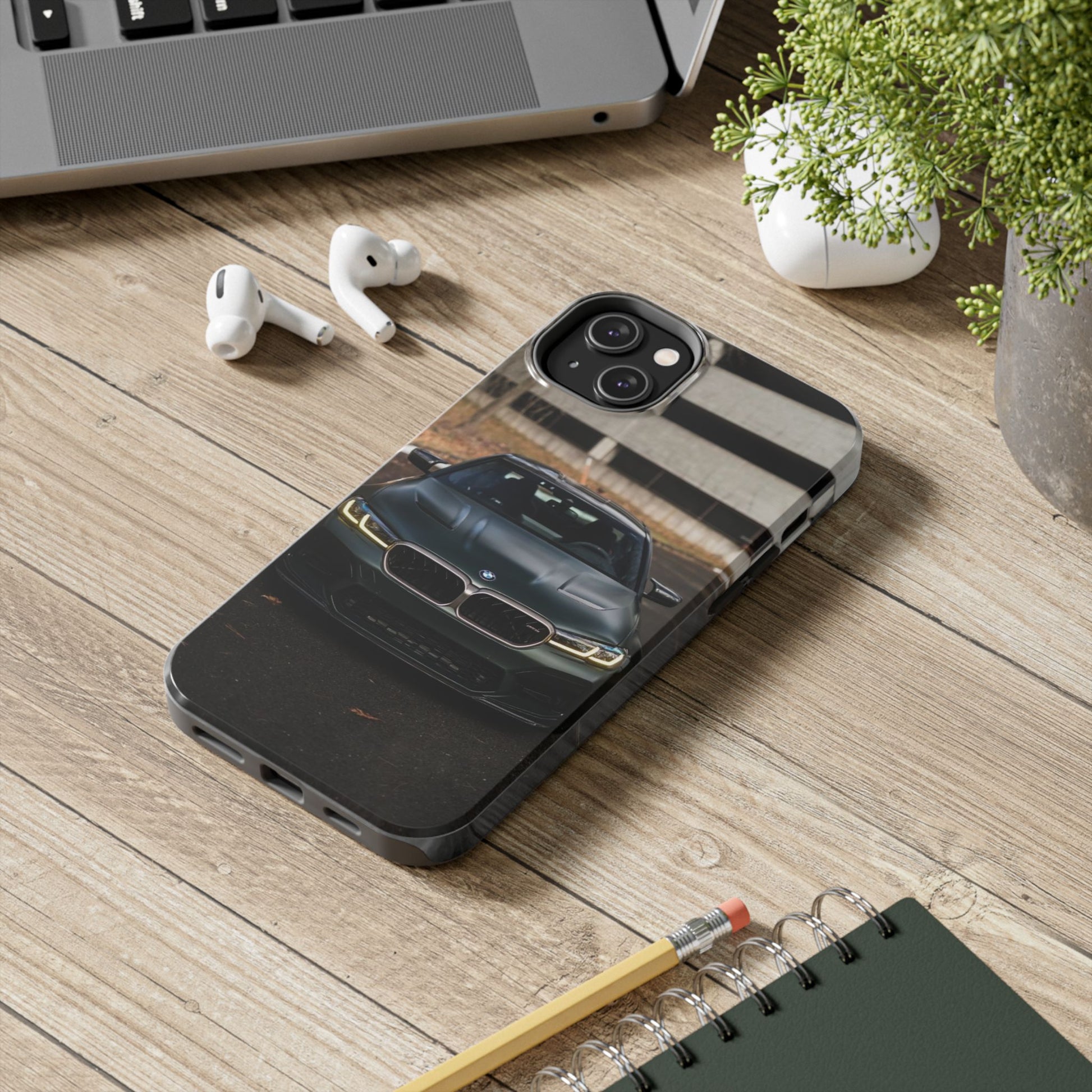 Protege o teu telemóvel com elegância automóvel! Esta capa resistente apresenta um design sofisticado de um BMW M5 CS visto de frente, perfeita para amantes de carros desportivos de luxo.